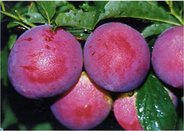 1、超巨王李:---韓國品種,6月下旬成熟,果面紫紅色,極大果,單果重180-200克,最大果重300 克,李中之王,極耐貯存,冷庫可貯存3 個月以上,味極甜,含糖14-17%,特豐產,必須疏果,以防果枝裂開。李中之王,極大果,味極甜。